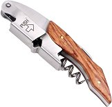 Сомелиерският тирбушон на Cheer Moda се отличава с елегантен дизайн. Разполага с малко сгъваемо острие, комбинирано с отварачка за бутилки, както и двоен лост за по-лесно отпушване и осигуряване на вертикално издърпване, което намалява напрежението върху корковата запушалка и риска от счупване. Дръжката му има широка опорна повърхност за ръката, което позволява много по-добър захват и комфорт при употреба. Изработен е от ABS, цинкова сплав и неръждаема стомана. Тирбушонът е с размери 12.7 / 3 / 2.7 cm. ...