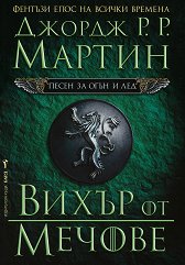 Фентъзи епос на всички времена. ... Светът необратимо се приближава към своята десетгодишна зима. Влошава се не само времето, а и войната. На север крал Джофри от дома Ланистър седи неспокойно на Железния трон. С помощта на едно грубовато момиче Джайм Ланистър, Кралеубиеца, се измъква от затвора си в Речен пад, за да осигури освобождаването на пленничките на Джофри, сестрите на Роб Аря и Санса Старк. А междувременно на юг кралица Денерис се опитва да наложи претенциите си над различните тронове с помощта на армия от евнуси. Третият том на върховната фантастична сага "Песен за огън и лед", започнала с "Игра ... |