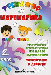 Упражнителната тетрадка е предназначена за формиране и овладяване на важни математически знания, умения и навици на децата в 2. клас. Основната ѝ цел е затвърдяване и автоматизиране уменията и навиците за решаване на задачи от таблично умножение и деление. Може да се използва за допълнителна работа в клас и за самоподготовка вкъщи. Тетрадката е част от поредицата Тренажор по математика с Оли и Поли на издателство Скорпио. ... |