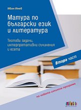 Тестови задачи, интерпретативни съчинения и есета. Помагалото е създадено за нуждите на гимназистите, които ще се явяват на държавен зрелостен изпит в края на 12. клас. Включените задачи и текстове в него са изцяло съобразени със заложените компетентности в учебно-изпитната програма за матура на МОН. Задачите и съчиненията в двете части на помагалото са така разпределени, че да може да се ползват поетапно в подготовката в 11. клас и в 12. клас. Заложени са всички предвидени от учебно-изпитната програма типове задачи - с избираем, с кратък свободен, с разширен свободен отговор, както и задачи за създаване на текст, ... |