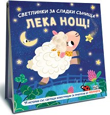Малкото теленце се приготвя за сън. То казва лека нощ на своите приятели във фермата. А накрая малките животни се сгушват в мама, и сладко-сладко заспиват. Тази мека книжка е идеална за четене и гушкане преди лягане и за забавления с шумолящите страници и пискалката през целия ден. Заниманията с нея подпомагат развитието на двигателните умения, слуховата, зрителната и тактилната сетивност. Книжката е подходяща за бебета от 0 до 3 години. Съдържа 8 цветни страници и пискалка. ... |