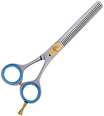 Едностранна професионална филажна ножица от инокс, 6" / 15 cm с регулиращ винт и 34 зъба. Тя е от серията "Professional Quality" на "Magnum". Има силиконов предпазител между дръжките и силиконови уплътнения на дръжките. Изработена е от закалена немска неръждаема стомана. Филажните ножици могат да бъдат различни видове, в зависимост от това дали имат зъбци на едната или и на двете режещи челюсти, от броя и големината на зъбите, както и от тяхната форма. Според тези критерии филажните ножици са едностранни и двустранни, а според едрината и броя на зъбите могат да отнемат различен процент от косата ( ...