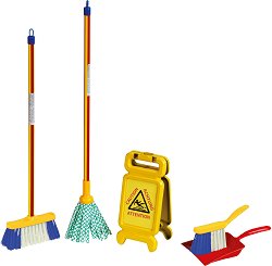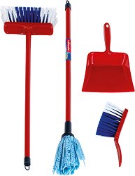 Комплектът от Klein превръща чистенето в игра. Здравата метла е идеална за събиране на прах и трохи, а след това малките могат да използват лопатката и ръчната четка, за да съберат всичко внимателно. Ако това не е достатъчно, идва ред на мопа - но първо трябва да се постави предупредителната табела, за да знаят всички, че подът е току-що измит. С този комплект децата опознават домашните задачи по забавен начин, като развиват своята моторика и координация око-ръка, докато имитират действията на възрастните. ... |