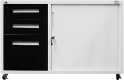Кардексът на RFG е предназначен за архивиране на документи и папки за картотеки с формат A4. Той разполага с 2 чекмеджета, отделение за висящи папки и отделение за съхранение с 1 рафт, с регулируема височина. Максималното натоварване на малките чекмеджета е 20 kg, а на голямото 30 kg. Чекмеджетата имат централно заключване, а вратата на шкафът отделен ключ. Кардексът е изработен от стомана с дебелина 0.6 mm. Той е прахово боядисан с гладко покритие. Цветът на корпуса му е бял, а този на чекмеджетата - графит. Важно: При поръчка ще получите кардекса в разглобено състояние с подробна инструкция за монтаж. ... |