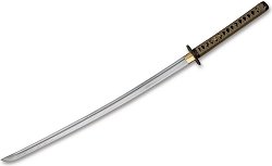 Мечът Bejuno на Boker се характеризира с голямо внимание към детайла и със сигурност ще ви впечатли от пръв поглед. Катаната е забележителен и богато украсен колекционерски меч, който може да се превърне в акцент в цялата ви колекция. Обвивките на дръжката и ножницата, Tsuka-Ito и Sageo, са във фин бежов цвят. Tsuba е оцветена в черно, златно и сребристо. Златистият декоративен лак създава привлекателен акцент върху черната ножница. Кованото и шлифовано острие от неръждаема въглеродна стомана 1060 предлага необходимата еластичност за устойчивост при удар и счупване. Характеристики: обща дължина: 100 cm дължина на ... |