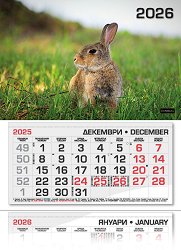 Календарът за 2026 г. е дванадесетлистов и съдържа красиви изображения на цветя. Съдържа: национални и международни празници; лунен календар; зодии; имени дни; страница за лични, семейни или фирмени празници. Размери: в сгънато състояние: 30 x 30 cm. в разгънато състояние: 60 x 30 cm. ... |