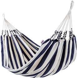 La Marinera Blue е единичен хамак с морски мотив на Naya Nayon, изработен от висококачествен плътен памук, който е приятен на допир. Той е красиво допълнение към всеки един екстериор или интериор и е подходящ за разпъване навсякъде - на терасата, в двора, на морето или на вилата в планината. Хамакът идеално разпределя теглото, чрез множество въжета с голяма дължина и разполага с изключително приятна, леко еластична оплетка на плата, както и с плътен двоен памучен плат, който осигурява изключителна издръжливост - един от най-плътните на пазара. ... |