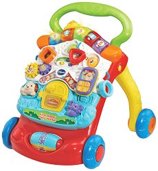 За да превърнете първите уверени крачки на прохождащото дете в забава, може да се доверите на проходилката за бутане тип уокър от "Vtech". Тя е със стабилна основа, удобна дръжка за лесен захват и 4 колела. Спомага за развиване на баланса, координацията и двигателните способности при първите опити на детето за прохождане. За моментите, когато бебето играе седнало, тя е оборудвана с панел с различни занимателни игри и активности, като въртящи се и плъзгащи се елементи, бутони за натискане и други. Той може да се сваля от уокъра и детето да играе само с него. По този начин играчката ще спомогне за развитието на ... |
