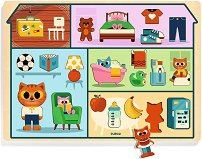 Този дървен пъзел от Djeco позволява на малките деца да изследват света на дома чрез части от ежедневието, подредени по стаи – спалня, баня, хол, кухня и таванско помещение. Благодарение на контрастните цветове и игривия дизайн, пъзелът привлича вниманието и насърчава активната игра. Подреждането на елементите подпомага развитието на фината моторика, координацията око-ръка, както и уменията за сортиране, съпоставяне и пространствено ориентиране. Играта създава отлична възможност за първи разговори за дома, предметите в него и ежедневните дейности. Етикетът FSC е най-довереният знак в света за устойчиво горско ... |