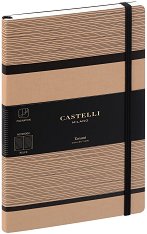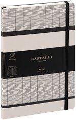 | Тефтерът е част от колекцията "Tatami" на "Castelli". ...  Характеристики на тефтера с ластик:   размери: 13 x 21 cm;  обрез на книжното тяло в бежов цвят;  тонирана хартия;  брой страници: 240;  широки редове;  разделителна лента;  твърди корици в бежов цвят с черни хоризонтални линии;  заоблени ъгли;  ластична лента за затваряне;  плик за съхранение на бележки върху задната вътрешна корица;  ластик - държач за  молив  или  химикалка.        Етикетът FSC е най-довереният знак в света за устойчиво горско стопанство. Когато купувате продукти с етикет FSC, вие помагате на горите. Суровините, използвани  ...  |