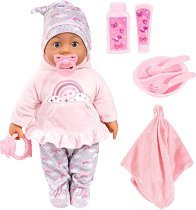 Очарователният комплект с кукла бебе от Bayer Design е създаден специално за гушкане, грижа и ролеви игри. Куклата има меко тяло, което я прави изключително приятна за прегръщане и подходяща дори за най-малките деца. Тя е облечена в цветна рокличка с дълъг ръкав, съчетана с удобни панталонки и сладка шапка. Комплектът включва и допълнителна дрешка, благодарение на която куклата може лесно да бъде преобличана според играта или настроението. За още по-реалистично преживяване са добавени аксесоари като биберон, лигавник, залъгалка и шише, с които детето може да я "нахрани" и утеши. Играта с тази кукла насърчава ... |