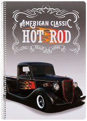 | Ученическата тетрадка Hot Rod на  Black & White  е с красив дизайн на класически коли, който ще внесе настроение в учебните часове на децата.   Характеристики:   широки редове;  брой листове: 80 или 105;  формат: A4 (20 x 29 cm);  корица: картонена с гланц, 290 g/m 2;  хартия: офсетова (бяла), 70 g/m 2;  с полета;  със спирала.    Важно!  Продуктът се предлага с различни дизайни на корицата. При поръчка ще получите дизайн на случаен принцип. ...  |