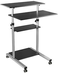 Работната маса е чудесен начин за подобряване на работния процес в офиса и дава възможност за работа в изправено състояние, като по този начин предотвратява схващания, причинени от продължително седене. Плотовете на масата са изработени от ПДЧ с водоустойчиво меламиново покритие и са с дебелина 16 mm и максимално допустимо натоварване от общо 60 kg. Височината на масата се регулира ръчно от 82 до 139 cm. Колелата на работната маса могат да се заключват, като по този начин не позволяват тя да се движи след като е поставена на избраното място. Размерите на работната маса са 70 / 139 / 68.7 cm. С поставки за всичко ... |