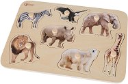 Детският дървен пъзел от "Classic World" се състои от подложка и 7 елемента с форма на животни. Подложката е с отвори, в които се поставят елементите. Те са големи, заоблени и са снабдени с удобни дръжчици за по-лесно хващане от малките неопитни пръстчета. Пъзелът ще помогне на децата да развият пространствения си усет, фината моторика и съобразителността. Размерът на дървената подложка е 30 / 21 / 2 cm. ... |