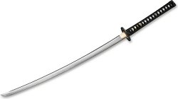Мечът Classic Samurai на Boker се характеризира с голямо внимание към детайла и със сигурност ще ви впечатли от пръв поглед. Катаната разполага с острие от неръждаема стомана 440, което е полирано и има хамон (втвърдена линия). Цуба се състои от черен чугун с два големи отвора. Дръжката е класическа с подложка от риба манта. Месинговата секция му придава специален вид. Дървената ножница е покрита с кафяв лак и покритие в античен цвят. Характеристики: обща дължина: 105 cm дължина на острието: 69 cm дебелина на острието: 3 mm тегло: 1050 g материал на острието: въглеродна стомана 440А материал на дръжката: дърво ... |