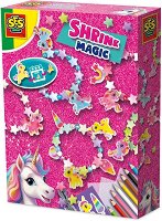 Потопете се в магията на творчеството с комплекта SES Creative. Малките творци могат сами да създадат красиви бижута с еднорози, като използват специалното свиваемо фолио. Нужно е само да очертаят и оцветят любимите си мотиви, след което при изпичане фигурките се смаляват, цветовете стават по-наситени, а талисманите – здрави и устойчиви. След това идва най-забавната част – нанизването. С помощта на звездовидните и перлените мъниста и сребърния еластичен конец могат да се изработят 5 уникални гривни, които децата с гордост да носят или подарят. Комплектът развива креативността, фината моторика и усещането за цвят и стил. ...