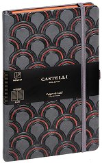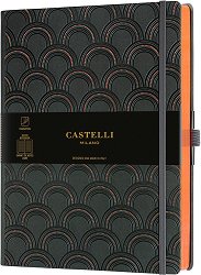 Луксозният тефтер Art Deco Copper от Castelli е подходящ за подарък на бизнес партньор или колега. Той създава не само приятно изживяване при писане, но със своя елегантен дизайн носи и частица от духа на Милано. От вътрешната страна на задната корица се намира разширяващ се джоб, в който може да съхранявате бележки. Характеристики на тефтера с ластик: размери: 19 x 25 cm; обрез на книжното тяло в меден цвят; тонирана хартия; брой страници: 224; широки редове; разделителна лента; твърди релефни корици с фигурални мотиви; заоблени ъгли; ластична лента за затваряне; плик за съхранение на бележки върху задната ... |