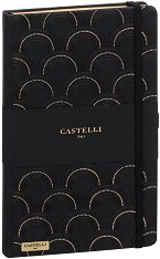 Луксозният тефтер Art Deco Gold от Castelli е подходящ за подарък на бизнес партньор или колега. Той създава не само приятно изживяване при писане, но със своя елегантен дизайн носи и частица от духа на Милано. От вътрешната страна на задната корица се намира разширяващ се джоб, в който може да съхранявате бележки. Характеристики на тефтера с ластик: размери: 13 x 21 cm; обрез на книжното тяло в черен цвят; тонирана хартия; брой страници: 240; широки редове; разделителна лента; твърди корици с красиви златисти мотиви; заоблени ъгли; ластична лента за затваряне; плик за съхранение на бележки върху задната ... |