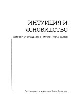Съставител: Нели Ванкова. ... Цитати от беседи на Учителя Петър Дънов. Книгата Интуиция и ясновидство представлява автентична тематична подборка на цитати от беседите на Учителя Петър Дънов по въпросите за интуицията и ясновидството, проследени и представени в хронологичен ред, започвайки от първите писмени сведения за беседите на Учителя, съхранени и популяризирани от неговите ученици и последователи, до последните. Към всеки цитат е посочено от кой цикъл беседи е цитатът, както и кога и къде е била държана беседата. В приложението са систематизирани всички източници за онези, които биха искали да се запознаят с пълния ... |