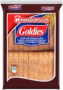 Пълнозърнестите сухари Goldies на Papadopoulos са чудесен избор за бърза закуска през деня или леко похапване вечер. Съчетават се отлично със сутрешното кафе или мляко, както и с различни сирена, пастети или мед. Сухарите са хрупкави, добре изпечени и приготвени по класическа рецепта с висококачествено пълнозърнесто пшенично и ръжено брашно. Подходящи са за вегани. Пълнозърнестите сухари Goldies се предлагат в: 2 опаковки - 160 g 3 + 1 опаковки - 320 g Важно: Да се съхранява на сухо и хладно място. След отваряне, консумирайте в рамките на 2 - 3 седмици. ... |