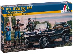 Мащабно умален сглобяем модел от пластмаса на военен автомобил амфибия, използван по време на Втората Световна война от немските войски. Дължина на макета - 10.9 cm. За да може да сглобите и залепите този макет, ви е необходимо лепило. Елементите на модела са направени от едноцветна пластмаса. Моделът може да се оцвети с боички. За Kfz. II VW Typ 166 - Schwimmwagen Тъй като Volkswagen 82 (Kübelwagen) бил много успешен по време на кампанията в Полша, било необходимо да се произвеждат все по-голям брой от този автомобил. По-късно Фердинанд Порше разработва версия на тази кола, наречена "Schwimmwagen". ... |
