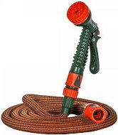 Градинският маркуч на RAMP е изработен от 4 слоя, включително 2 вътрешни слоя от висококачествен латекс, синтетична плетка за максимална гъвкавост и външен пластмасов защитен слой. След пълнене с вода се разтяга до няколко пъти дължината си, а при прекратяване на водоподаването се прибира обратно. Не се прегъва или усуква, което го прави удобен за работа. Комплектът включва 2 бързи връзки, конектор с редукция и мултифункционален пистолет със 7 режима на пръскане и заключваща функция. Подходящ е за градина, двор или тераса, заема малко място и се съхранява лесно. ... |
